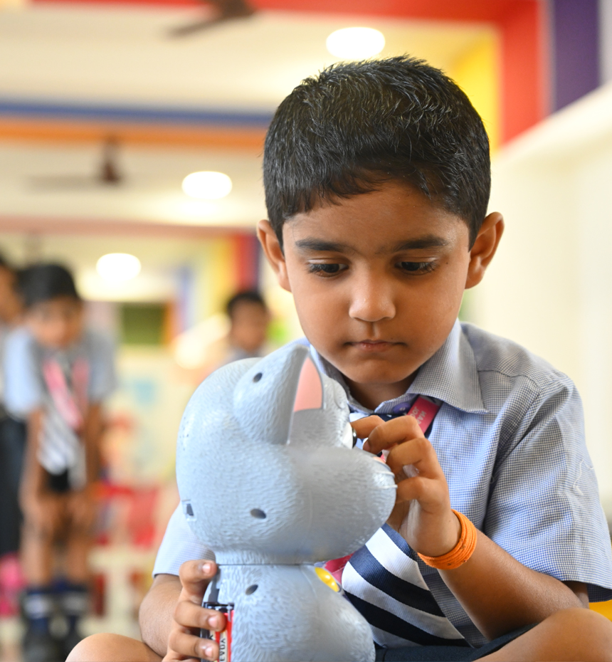 The modernly structured library consists of books for the Junior Kindergarten and Senior Kindergarten students with a lot of images and contents that invigorate their brain activities.
